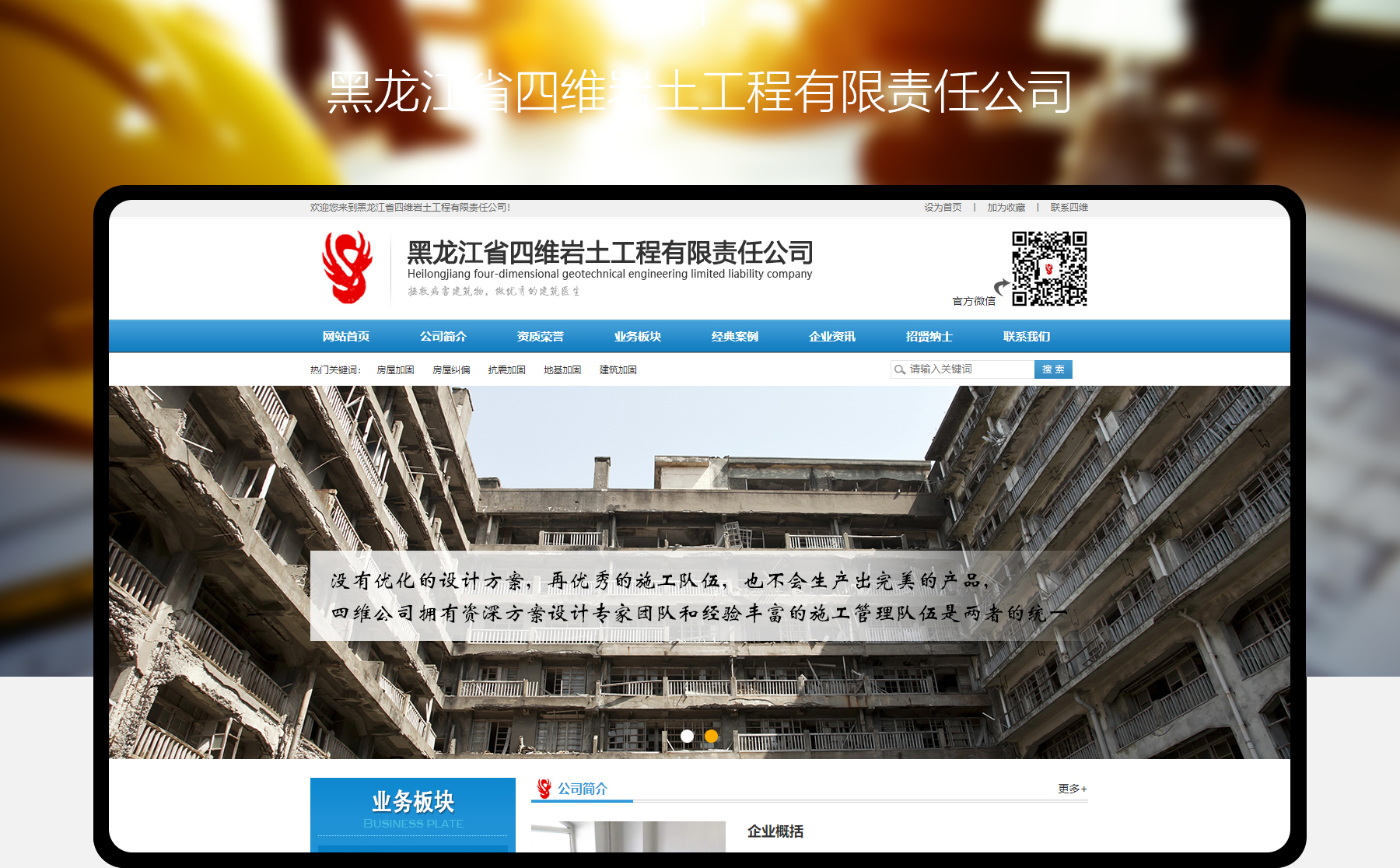 是一家集方案设计、施工和咨询于一体,专门从事建筑物加固与改造、纠倾与托换、地基与基础加固处理等建筑物病害治理工程的专业技术科技服务企业。