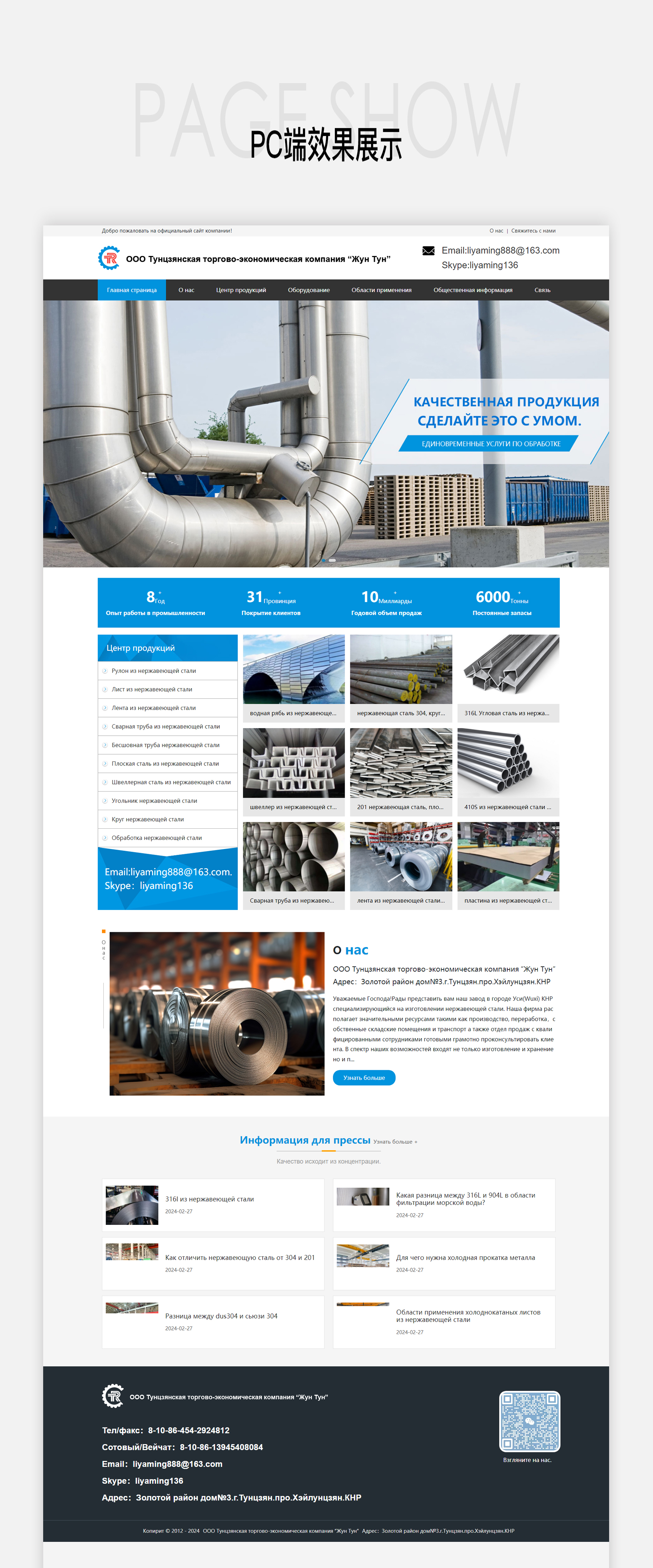 专业不锈钢制造厂 俄文 制造、加工不锈钢