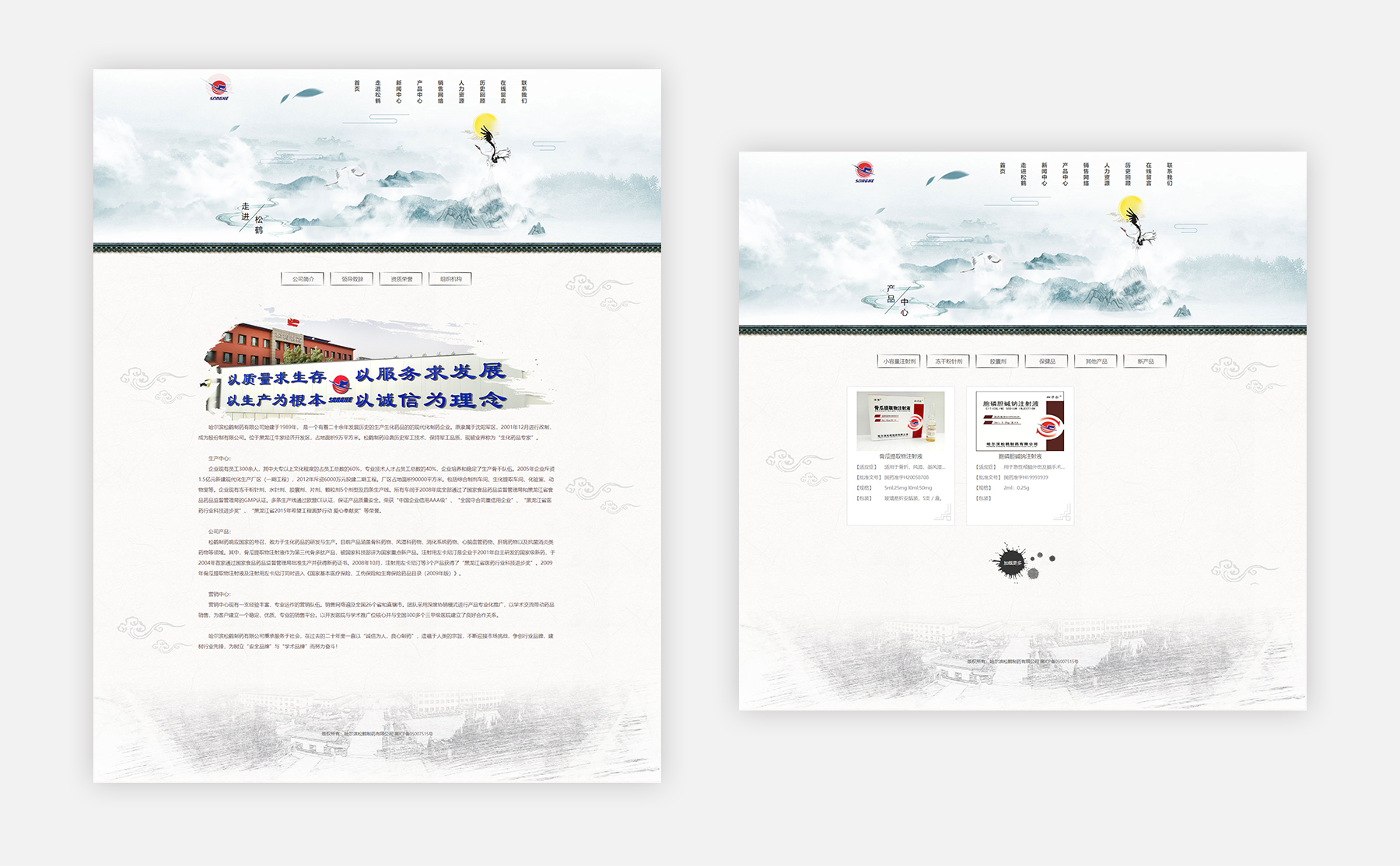 哈尔滨松鹤制药有限公司始建于1989年, 是一个有着二十余年发展历史的生产生化药品的的现代化制药企业。原隶属于沈阳军区,2001年12月进行改制,成为股份制有限公司。位于黑龙江牛家经济开发区,占地面积9万平方米。松鹤制药沿袭历史军工技术,保持军工品质,现被业界称为“生化药品专家”。